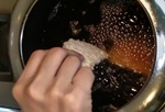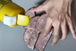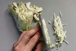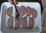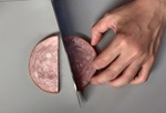 ボロニアソーセージを5mm厚さに切る。大きければさらに一口大に切る。