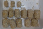 7 いもだねを成形する。卵液を作り、小麦粉にまぶしたいもだねを卵液にくぐらせ、パン粉をまぶす。