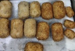 1 油を170℃まで温度を上げコロッケを入れていく。具材はどれも火が通っているので、衣さえキツネ色に揚がれば良い。コロッケは低温でぐずぐずしてると衣が外れ油の中でバラバラに分解する。