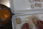 8 バットに並べラップをして、揚げる直前まで冷蔵庫へ。
