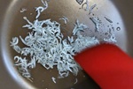 1 フライパンにサラダ油を熱し、中火寄りの弱火でしらすを炒め、うすく焼き色を付ける。