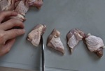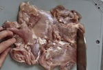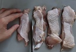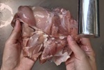 鶏もも肉は水洗いしてから水気をふき取る。