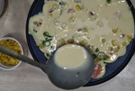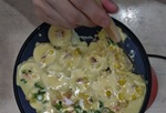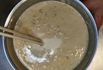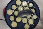 4 具を隠すように生地をかぶせる。周囲に流れあふれるくらいの量でOK。少ないと後で球体にならない。