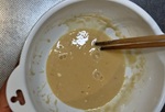 詰めるれんこんセットの数に合わせて肉だねを分けておく。今回は20詰めるので、肉だねをまずは半分にして10。さらに半分で5・・・という感じで1個分あたりの肉の量をだいたい認識する。