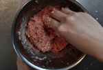 ボウルに豚ひき肉を入れ、豚ひき肉の下味の調味料を入れ、よく混ぜる。