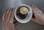 1 片手鍋に熱湯を沸かし、おたまで卵をそっと入れ、フタをして強火寄りの中火で11分ゆでる。たまに転がす。