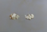 1 漬けダレの材料のにんにくとしょうがは、うす切りにする。