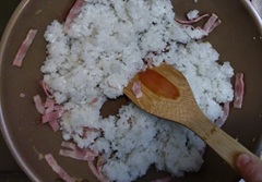 4 ご飯を加え混ぜ炒める。