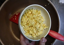 2 細かくなったのでフライパンから引き上げ、器に移す。