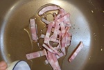3 油を足して、ベーコンを炒める。