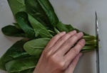 1 ほうれん草の根本を切り落とし、茎をバラバラにして良く洗って土を落とす。