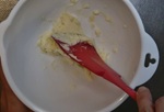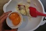 10 卵黄をバターのボウルに入れ混ぜ合わせる。