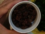 2 レーズンを戻す。レーズンを器に入れ、分量の水と赤ワインで浸して30分以上置いておく。
