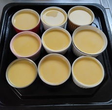 7 器にプリン液を流し込む。