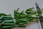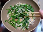 1 ニラは水洗いして水気を拭き取ったら、5cm幅に切る。
