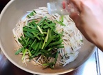 2 ニラを加え、塩·こしょうを振り、さらに1分炒める。