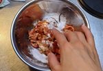 2 片栗粉を入れ、均一にまぶす。