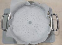 クッキングシート蒸し器の底の大きさに切る