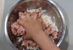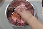 味付けタレを入れ混ぜ合わせ、味が均一になるようによく練る。