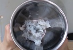15下味の塩·こしょう、卵白、先程すりおろしたしょうが、片栗粉、パセリ、を入れ、粘り気が出るまで練る。えび肉だねの完成。