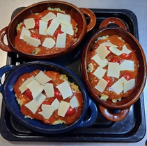 野菜を乗せる、今回はミニトマト。その上にチーズを乗せる。オーブンを250℃で10分、予熱スタート