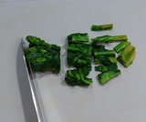 鍋で熱湯を沸かし、菜の花のつぼみを持ち、茎から先に5秒ゆでる。